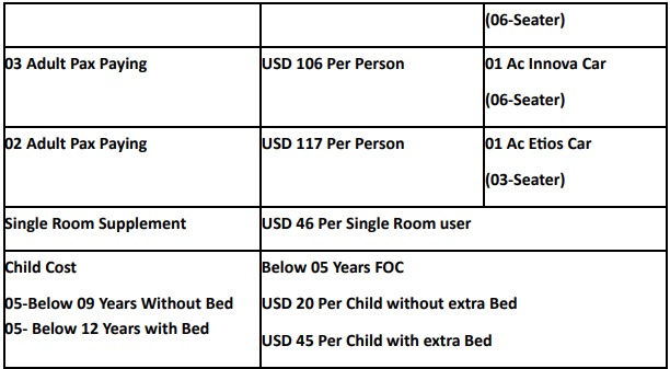 1. 02 Nights Hotel accommodations on Twin / Double/ Triple Sharing Basis.