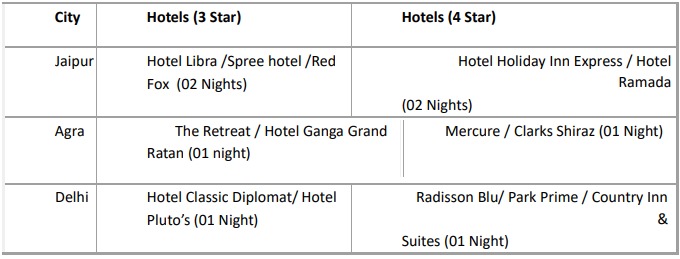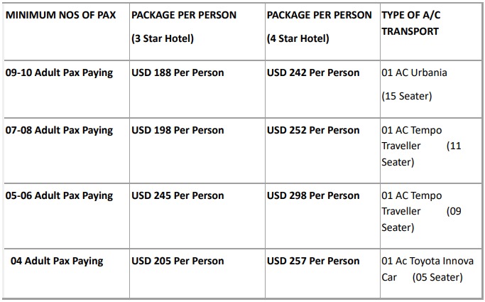 1. 04 Nights hotel accommodation on Twin/ Double/ Triple Sharing Basis.