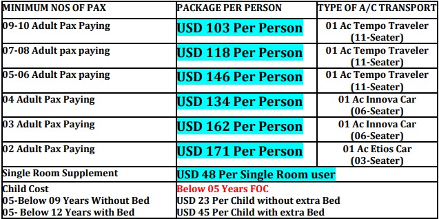 • In case on any currency fluctuations or amendment in local Government taxes, or any fuel hike, we reserve the right to adjust the tour price accordingly.