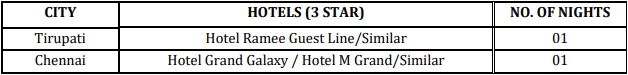 Arrive Chennai airport, meet and assistance on arrival and drive to Tirupati. On arrival check in at hotel. After freshen up, visit Tirupati Balaji Temple for Darshan -The Tirupati Balaji temple is rightly called the Bhuloka Vaikuntam – the abode of Vishnu on earth. Thus, it is believed that Lord Vishnu has manifested Himself in this temple during this Kali age to guide and direct His devotees towards salvation. It is said the main idol of Lord Venkateshwara is so unique and powerful. The charming idol has a number of miraculous characteristics that are amazing. On a daily basis, the idol is magnificently decorated with flowers dresses and ornaments. The temple has one of the massive stocks of golden ornaments used for decorating the Lord.